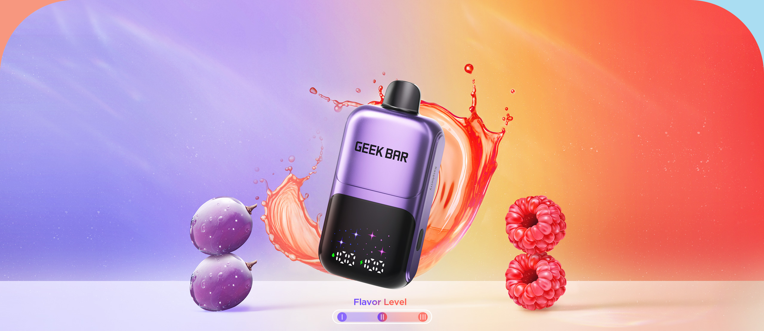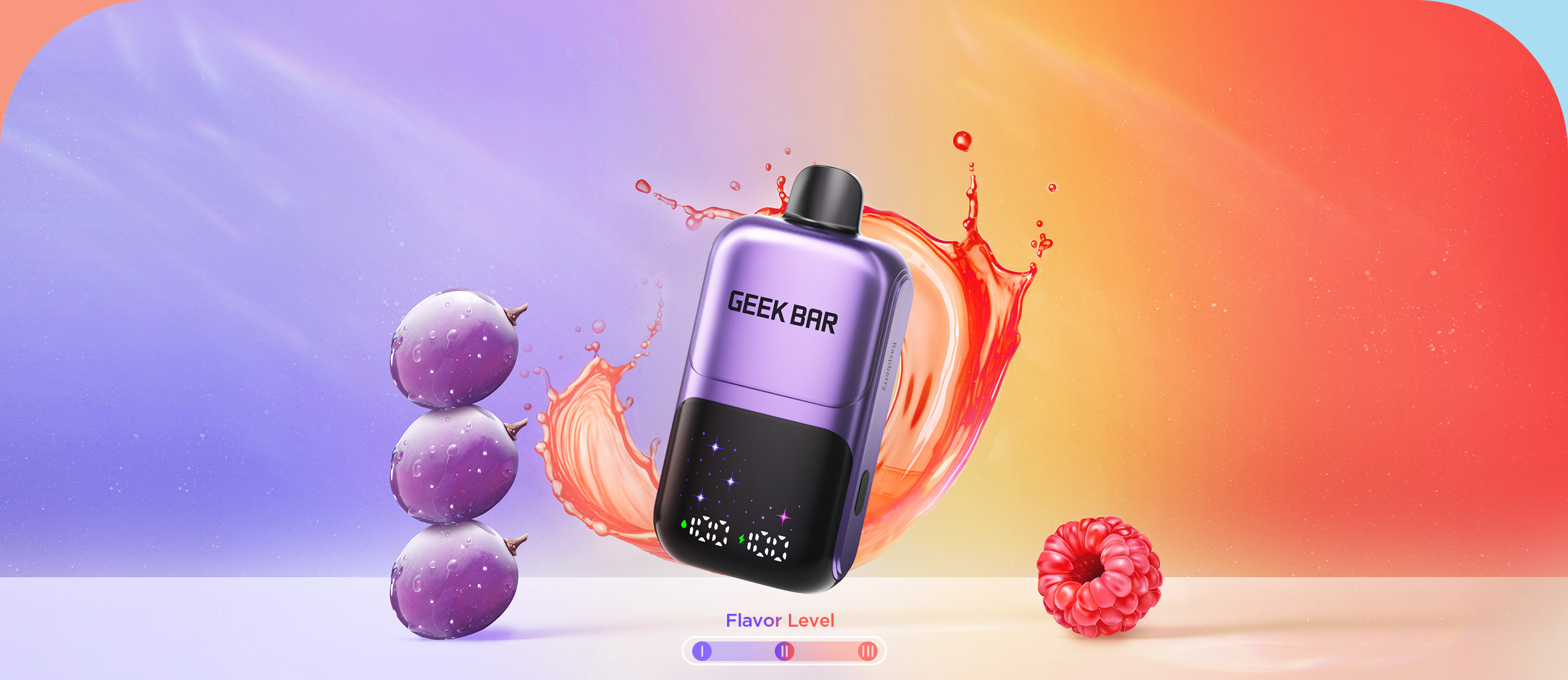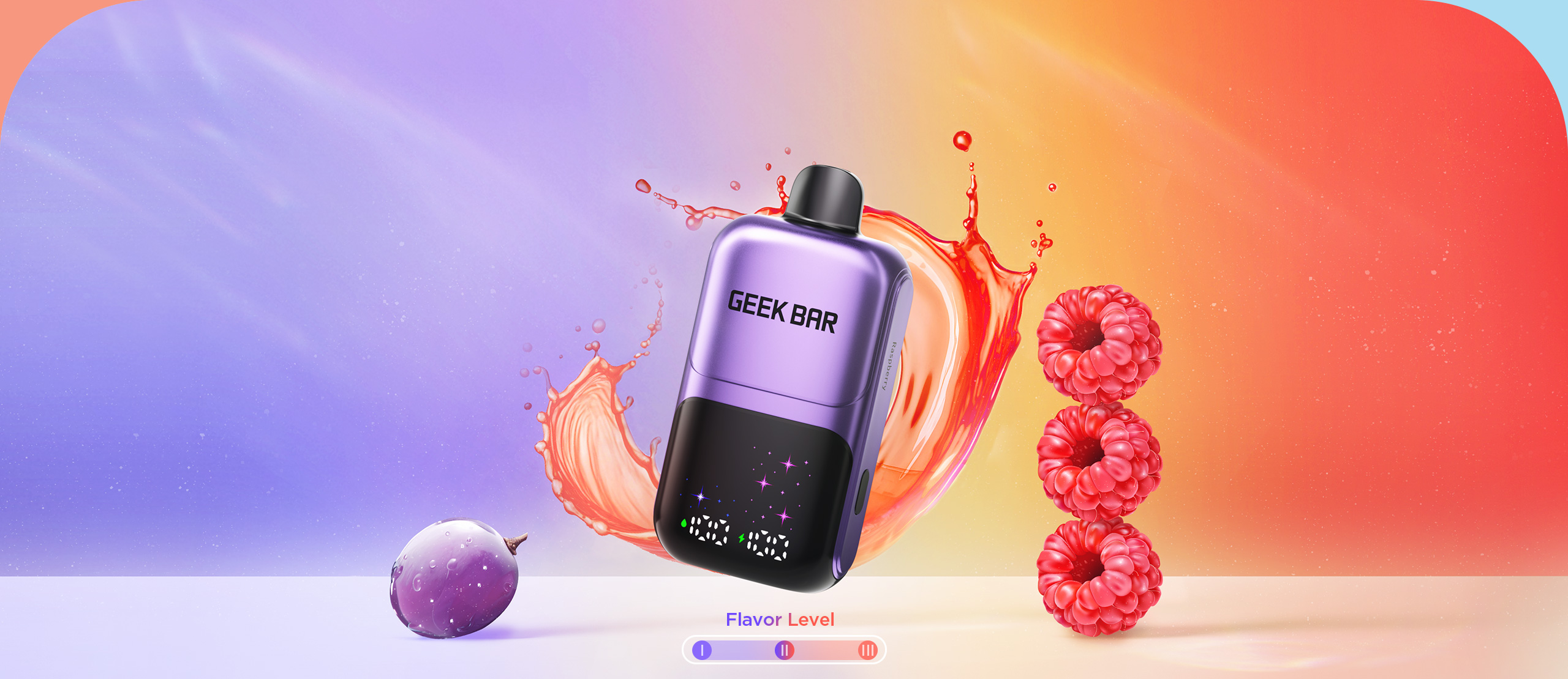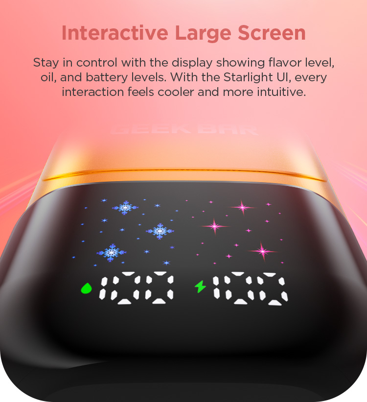 Stay in control with the display showing flavor level, oil, and battery levels.